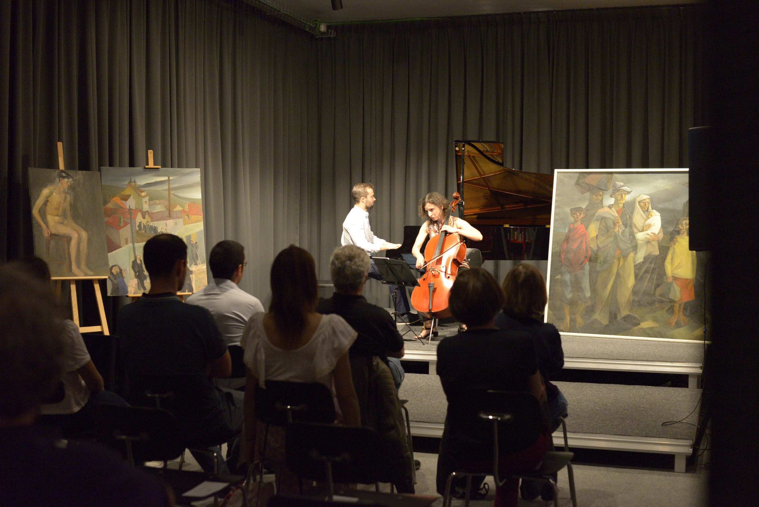 Recital em dueto com o pianista portuense Vasco Dantas e a violoncelista Isabel Vaz (filha de Isolino), com música de Beethoven, Mussorgsky e um encore surpreendente, com o cenário das obras de arte cedidas pela Faculdade de Belas Artes da Universidade do Porto, não poderia ter decorrido em sala mais apropriada do que esta da “Casa Comum”, no edifício da Reitoria da Universidade do Porto